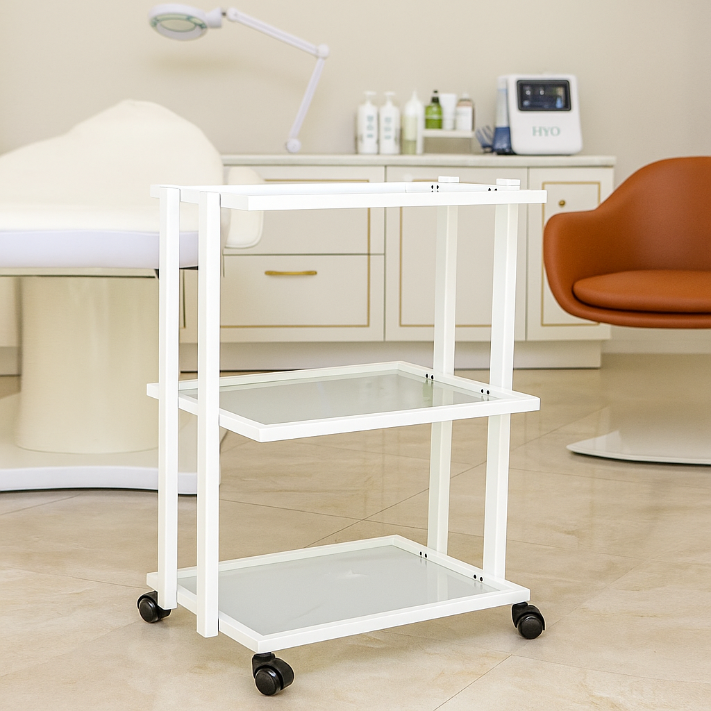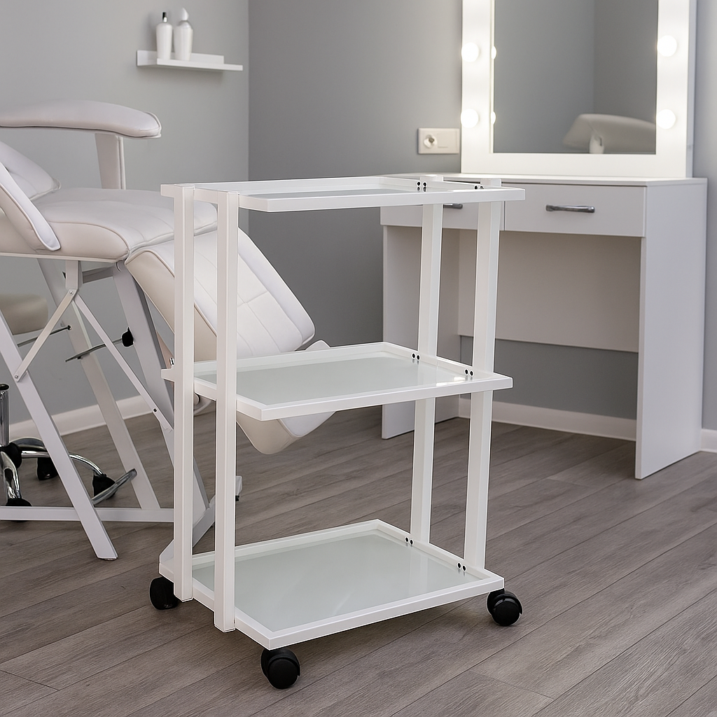 Stolik kosmetyczny szklany T Plus to funkcjonalny, estetyczny i nowoczesny mebel stworzony z myślą o salonach kosmetycznych, spa, gabinetach medycyny estetycznej oraz domowych przestrzeniach beauty. Dzięki połączeniu eleganckiego designu i praktycznych rozwiązań, idealnie sprawdza się w codziennej pracy kosmetyczki, stylistki czy makijażystki. Solidna konstrukcja i łatwość w utrzymaniu czystości sprawiają, że jest to niezastąpiony element wyposażenia każdego profesjonalnego wnętrza.