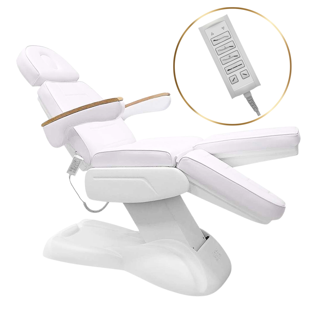 Fotel sterowany jest za pomocą ergonomicznego pilota. Fotel posiada eleganckie podłokietniki wykończone drewnem, które można podnosić lub demontować. Zagłówek jest regulowany i posiada otwór, dzięki któremu możliwe jest przeprowadzenie różnych zabiegów z troską o komfort Klienta.