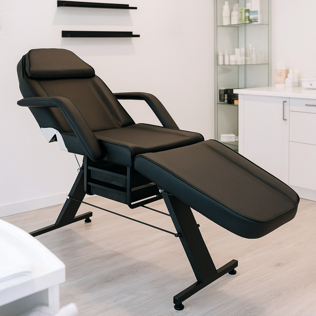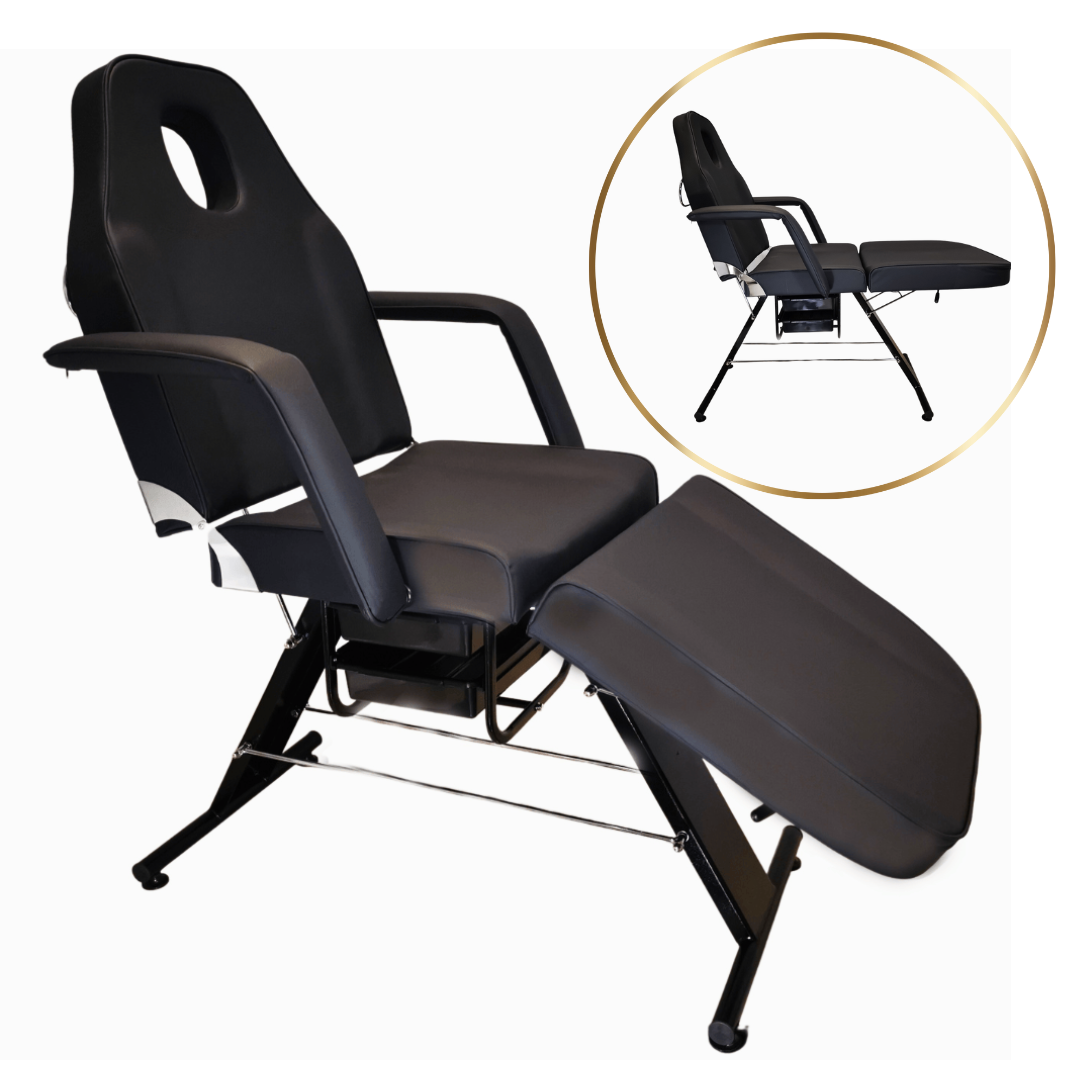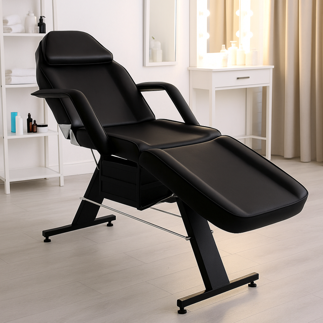 Manualny fotel kosmetyczny BASIC z kuwetami to funkcjonalne i stylowe rozwiązanie dla salonów kosmetycznych, studiów masażu, spa, odnowy biologicznej czy salonów tatuażu. Dyskretny design w klasycznej czerni dopełnia nowoczesnej aranżacji wnętrz, a praktyczne wyposażenie zapewnia wygodę pracy i komfort klienta.