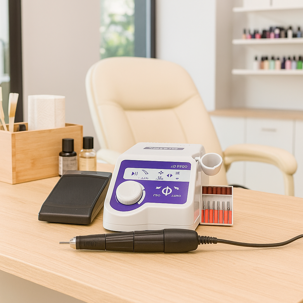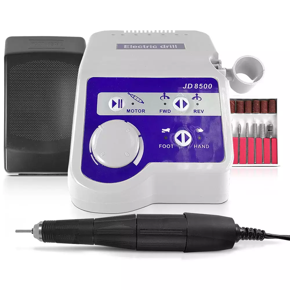 Urządzenie idealnie nadaje się dla stylistki paznokci oraz dla miłośniczek zdobienia paznokci. W zestawie podstawowy zestaw frezów.
