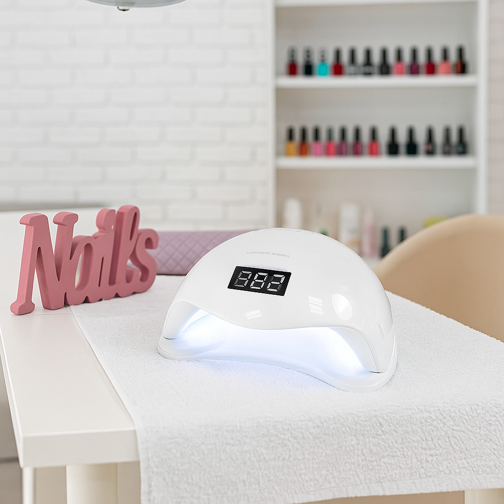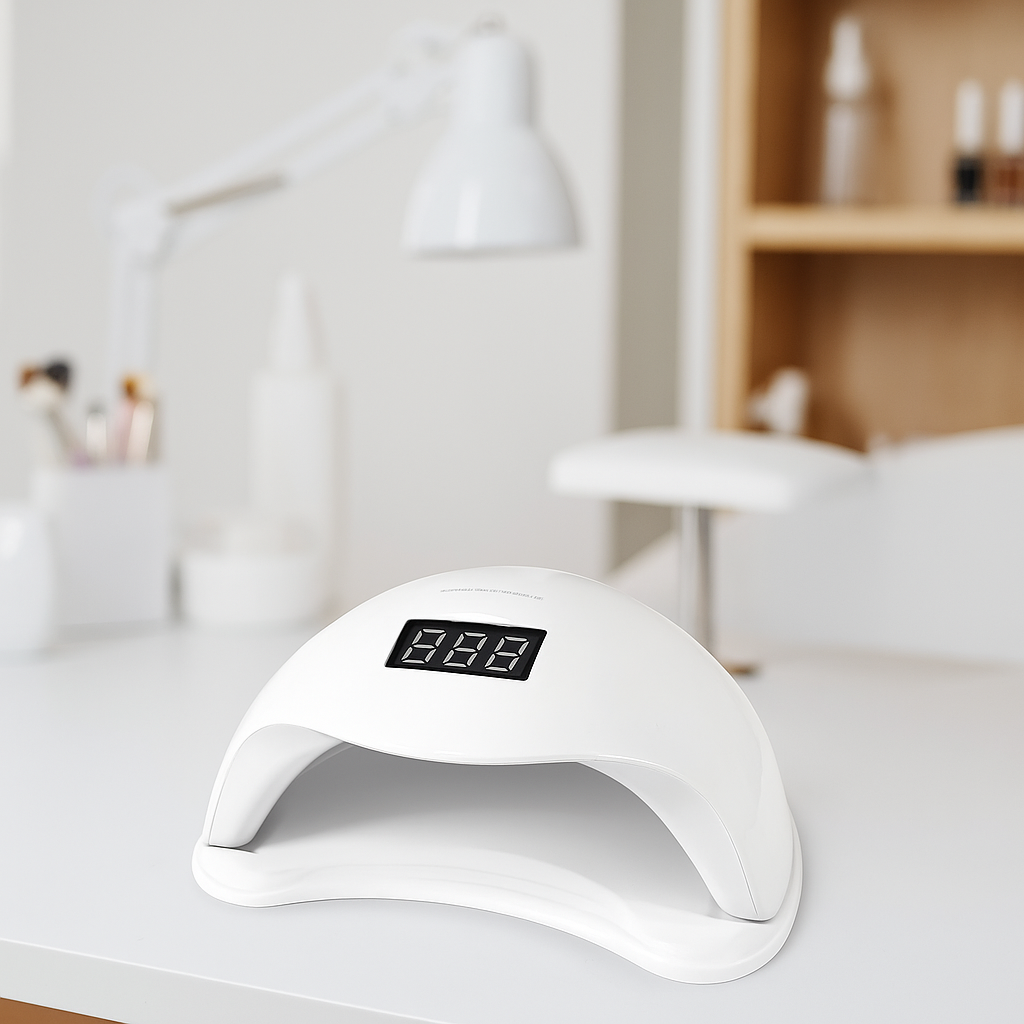 Lampa UV LED Sole5 48 W w eleganckim białym wykończeniu to idealne rozwiązanie zarówno do salonów kosmetycznych, jak i do użytku domowego. Dzięki technologii UV Dual LED (365 nm + 405 nm) i aż 24 diodom światło rozchodzi się równomiernie w kształcie litery „U” — co zapewnia szybkie i równomierne utwardzenie lakierów hybrydowych, żeli i innych produktów światłoutwardzalnych.