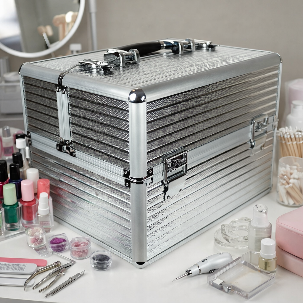 Połączenie funkcjonalności, estetycznego srebrnego koloru i kompaktowego rozmiaru sprawia, że kuferek jest wygodny w codziennym użytkowaniu. Przemyślany układ wnętrza ułatwia szybki dostęp do kosmetyków i narzędzi, a możliwość modyfikacji przestrzeni pozwala dostosować go do indywidualnych potrzeb.